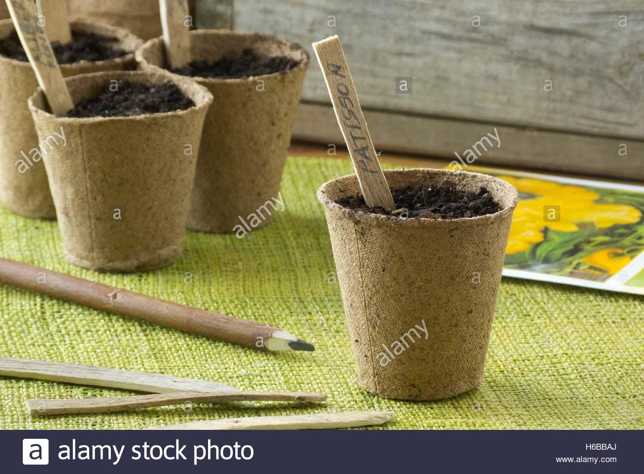 To Sow Vegetable Seeds Indoors In Turf Small Pots Stock